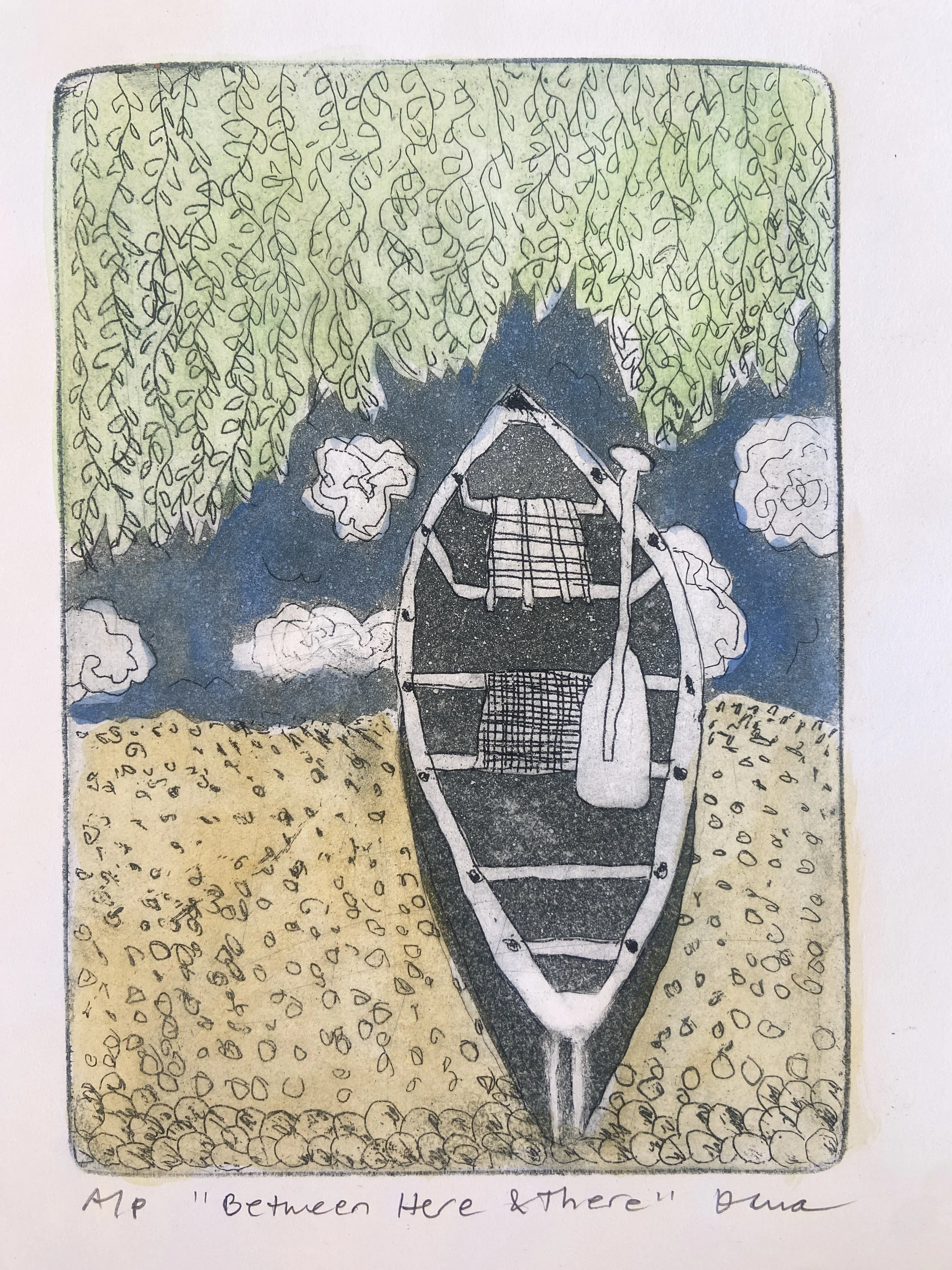 "Passage" side 1. Parts of etchings on sheets of glass go back in depth. in Triton Museum "Expand the Boundaries" show